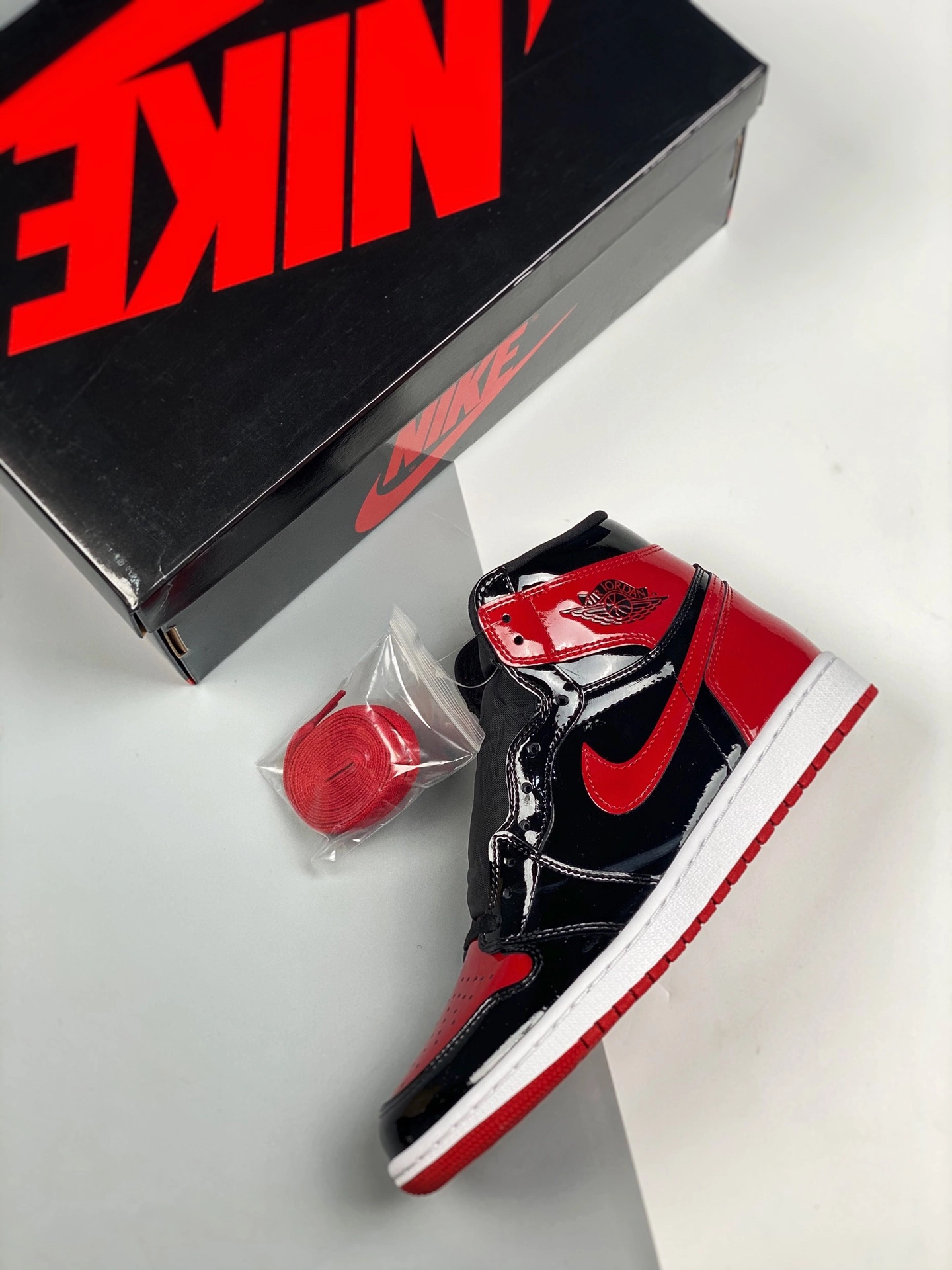 Be the first to review “Air Jordan 1 High OG “Bred Patent” Black/White-Varsity Red For Sale” Cancel reply