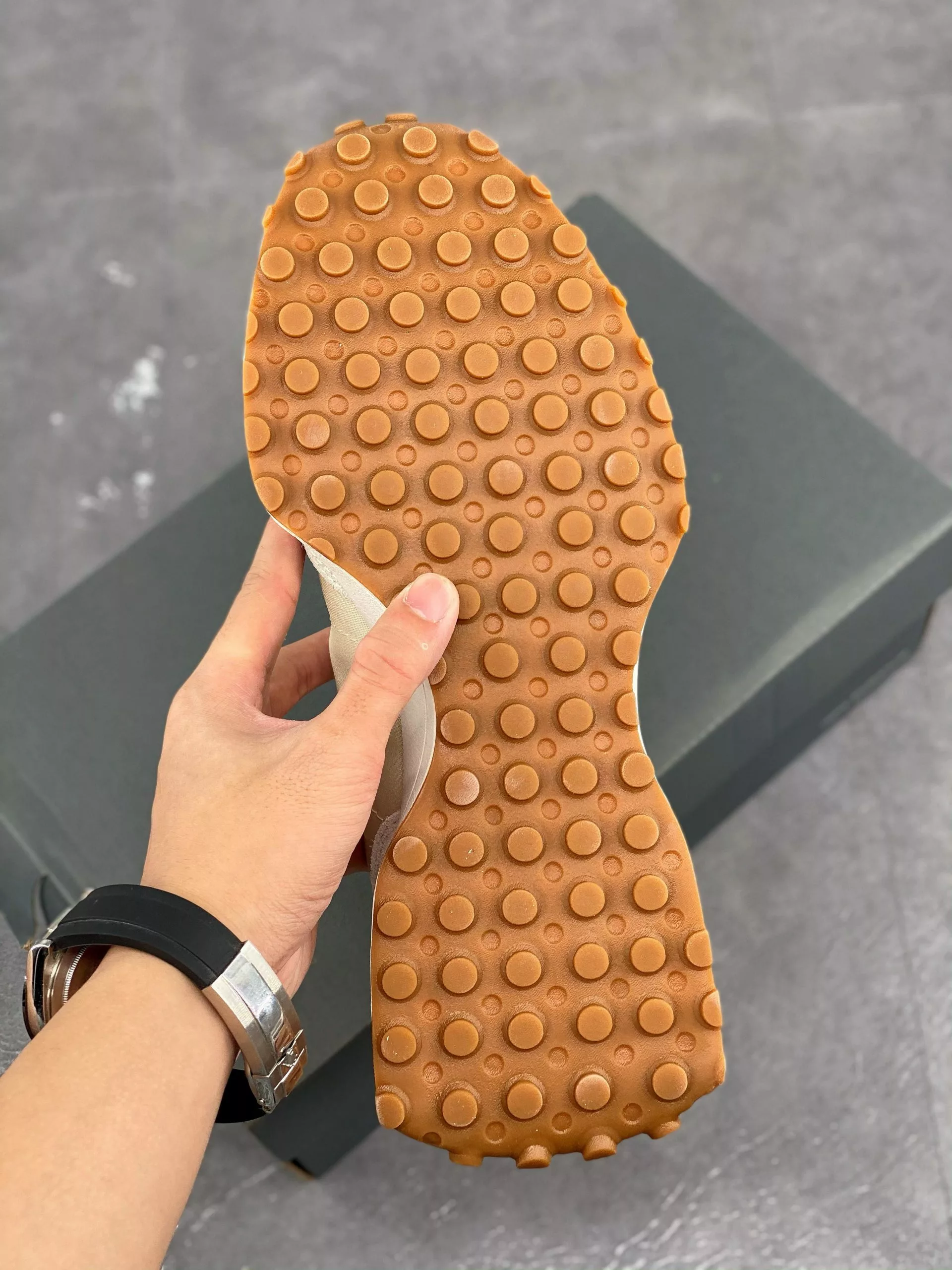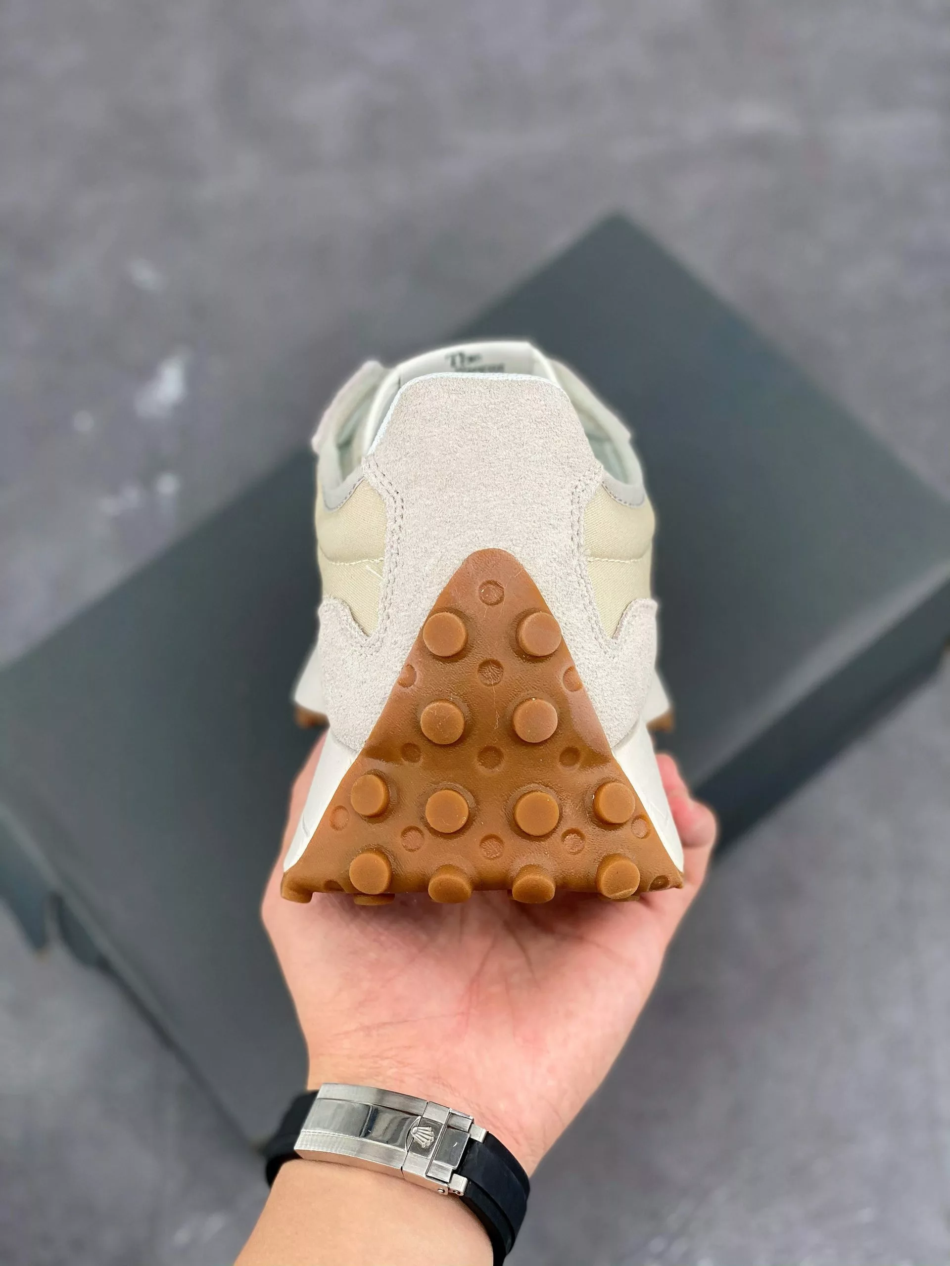 The upper design of the 327 gives a nod to New Balance’s 70s’ running shoe silhouette, with additional details like the large “N” logo on the side delivering the necessary bold look.